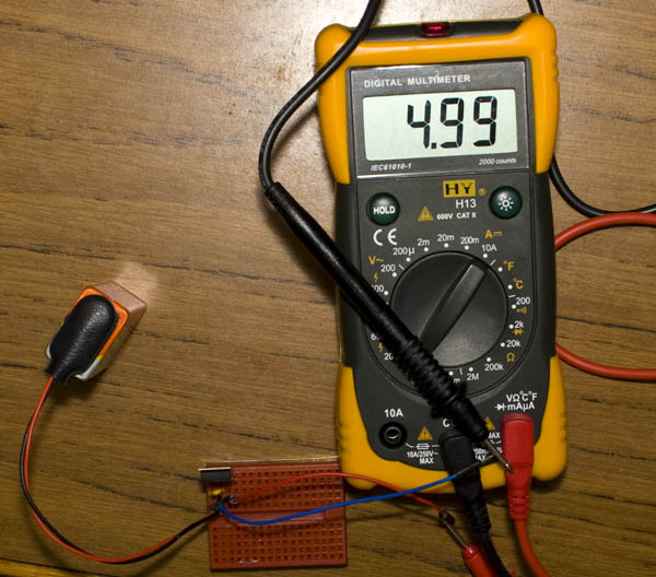 It works! But what we haven’t looked at is how much current does this voltage regulator take up when nothing is connected to it? One would think close to 0mA however it’s not the case, for me it’s 3mA when no load is connected; the datasheet says it’s typically 5mA. This is what’s called the Quiescent Current, the amount of mA the voltage regulator takes when no load is connected.