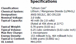 One problem with going with a CR1220 is that it only has a capacity of 40mAh.