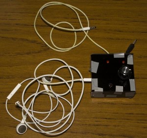 As you saw in the start, we’ve now got the PCB built. We have the 3 analog switches up the top, the opamp near the middle and ATtiny on the right. I built a quick mock up case (which will be redone soon) that has a female TRRS connector on the left, the white cable connects to the iPhone and the black cable goes to the work phone, 2 LEDs and 2 buttons. Soldering the PCB took a while as I was testing each part separately but in the end it all worked out and works great. It was quite the learning experience for me because I’ve never really played around with audio much and I’m sure there are many other ways to do this.