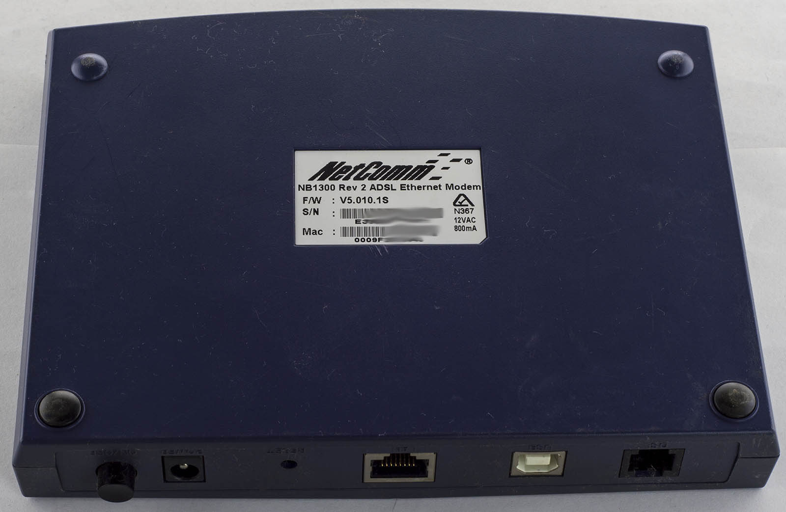 Today we’ll be taking a look at the Netcomm NB1300 Rev2 ADSL Ethernet Modem which is an 10/100 Ethernet & USB ADSL modem, quite an old one back from 2003 and a bit dusty too.